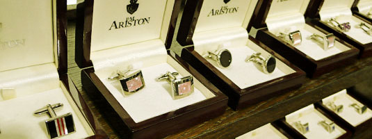P.M. Ariston führt Hemden und Blusen von Seidensticker "Schwarze Rose", Profuomo Originale und Profuomo Sky Blue, Dorani Claude Dufour, Eden Valley und Jacques Britt, Krawatten von Michaelis, Accessoires von Giro Moda und Schuhe von Cordwainer Lord Spencer. |